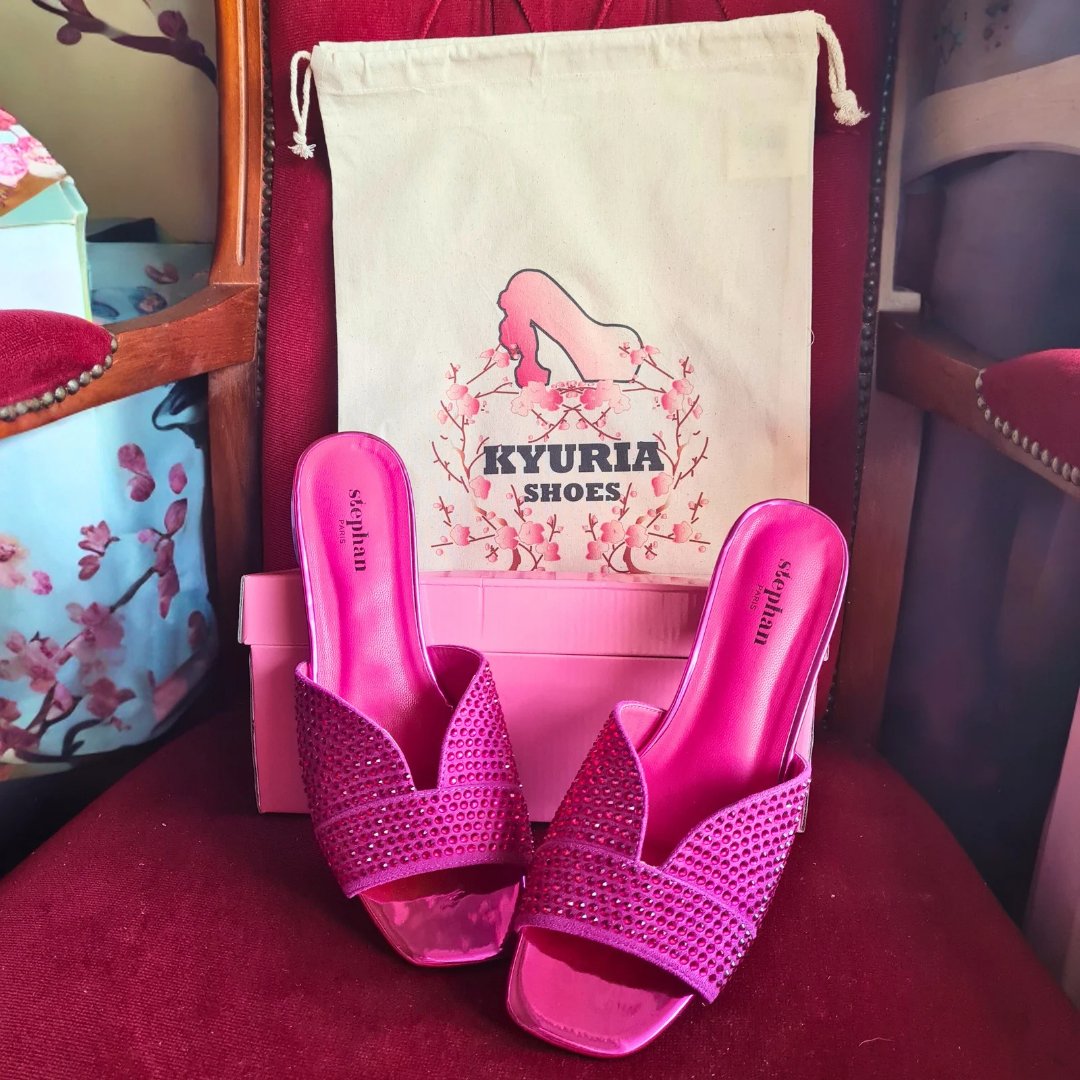 Sandale grande taille de couleur fushia arborant de jolie strass sur le devant idéale pour une tenu de fête ou pour apportez un coups de peps à votre tenu de tout les jours